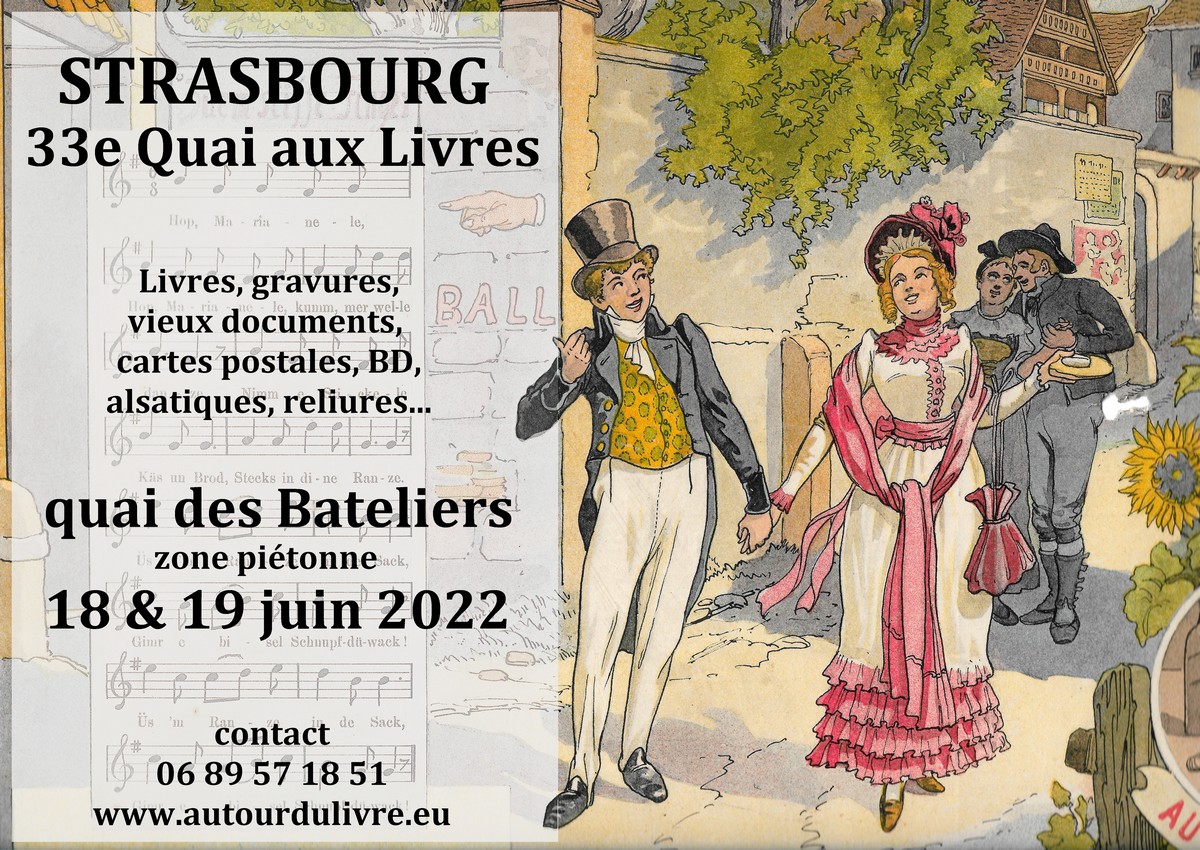 Der Verein "Autour du livre" widmet sich der Organisation von Büchermärkten im Elsass. Unsere Veranstaltungen bestehen nur aus professionellen Händlern und bieten Ihnen eine große Auswahl an alten oder gebrauchten Büchern (französische und deutsche), aber auch Gravuren, Plakate, Fotografien, Postkarten...