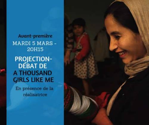 A Thousand girls like me. Le film sera présenté en avant-première mardi 5 mars à 20h au Cinéma Odyssée à Strasbourg en présence de l’équipe du film. Pour le débat autour du film, nous aurons le privilège d’accueillir Mme. Françoise Bey, adjointe au maire de Strasbourg, Sophie Schweitzer, présidente de la LDH Strasbourg, des militantes du groupe Le Planning Familial 67 ainsi que l’association féministe étudiante Golden Z - Les Louisettes.