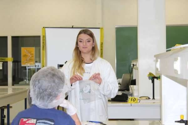 Les apprentis policiers se mettent à la place des enquêteurs scientifiques pour tenter de résoudre l’enquête et en analyser les quelques indices relevés dans un laboratoire d’une éminente chercheuse mystérieusement disparue.... Messages, taches de sang, empreintes ... sont relevés et doivent être analysés pour reconstituer la scène et trouver qui est à l’origine du crime !