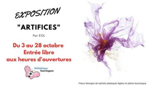 Nous exposons ce mois sa série "Artifices : fleurs étranges de sachets plastiques figées en pleine bourrasque."