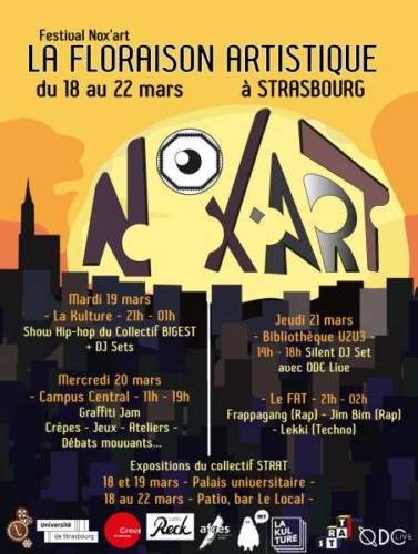 Pour la première édition du Nox’Art Festival, l’AFGES t’invite au club La Kulture à Strasbourg, pour une soirée d’ouverture entre électro et hip-hop !