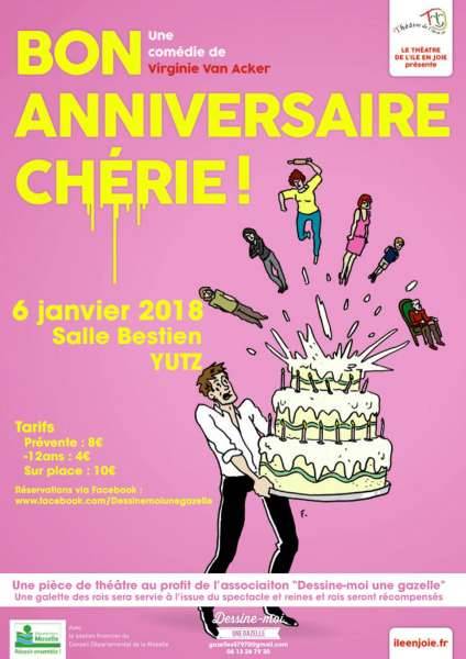 Pour fêter dignement ses 55 ans, Jeannine a invité tous ceux qu’elle aime. Seulement son mari a décidé de pimenter un peu la fête. Oublions chapeaux pointus et cotillons, sortons mitraillettes et règlements de comptes et... Bon anniversaire chérie!La soirée est au profit de l’association Dessine-moi une Gazelle :