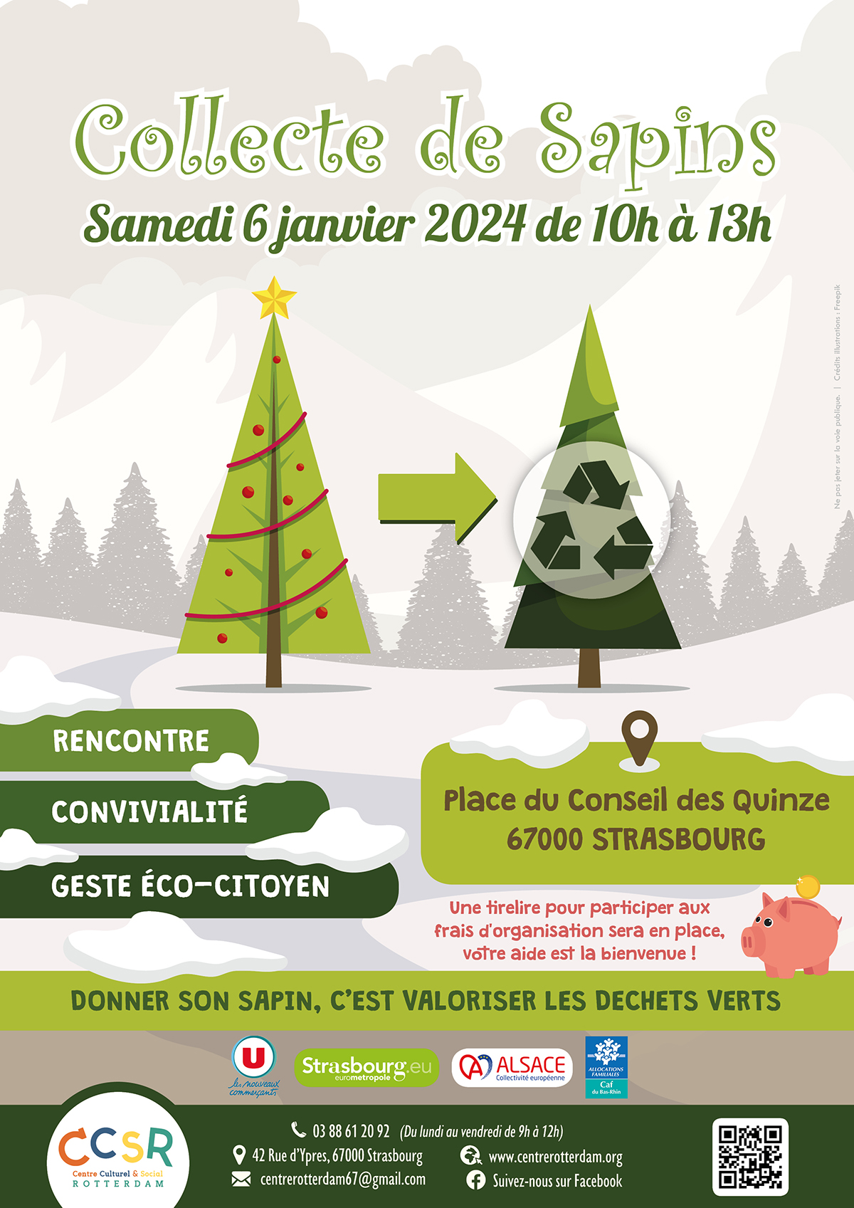 Pour la douzième année consécutive, le Centre Culturel et Social Rotterdam, réitère son projet intitulé : COLLECTE DE SAPIN : DONNER SON SAPIN C’EST VALORISER LES DÉCHETS VERTS ! “