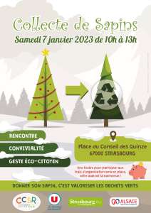 Pour la onzième année consécutive, l’association, en partenariat avec la Ville de Strasbourg et les commerçants du quartier, lance cette opération de récupération de sapins en invitant les habitants à venir les déposer dans des bennes prévues à cet effet. Que vous soyez à pied ou à vélo, le sapin sur l'épaule ou acheminé en charrette, tous les moyens les plus imaginatifs sont bons pour donner son sapin.