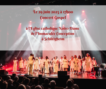 La chorale Gospel Rhymes est ravie de vous convier à son dernier concert de l'année 2024-2025 ! Celui-ci aura lieu le dimanche 29 juin 2025 à 17h00, à l'Eglise catholique Notre-Dame de l'Immaculée Conception à Schiltigheim.