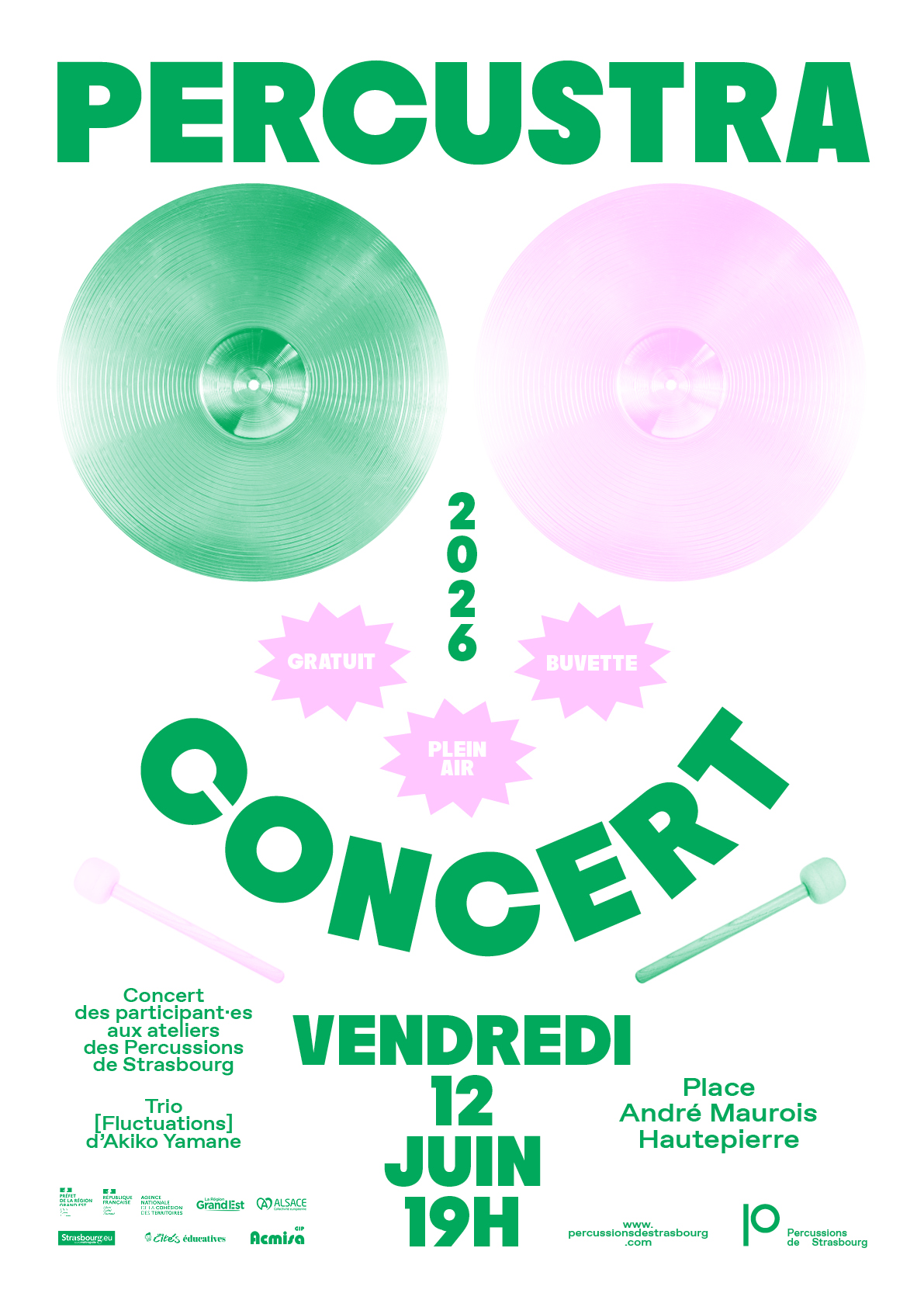 Le vendredi 12 juin, les Percussions de Strasbourg vous invitent au concert de restitution de l’édition 2026 de Percustra, un événement festif et ouvert à tous·tes, où se dévoilent les créations collectives des participant·es. Ces œuvres sont le fruit d’ateliers hebdomadaires accessibles à toustes, permettant à chacun·e d’explorer la percussion et de contribuer à une création musicale partagée.