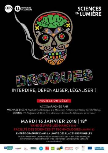 Cette soirée est proposée en lien avec l’exposition « DROGUES », visible au 2e étage de la bibliothèque universitaire des Sciences et Techniques (Faculté des Sciences et Technologies), jusqu’au 23 février 2018.