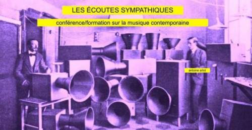 Les Écoutes Sympathiques se déroulent en une session de 3 heures (allongés dans une pénombre agréable) permettant de découvrir les différentes révolutions sonores, l’art des sons, le dodécaphonisme, les spectraux, l’électroacoustique, la musique concrète, le théâtre musical, la poésie sonore...