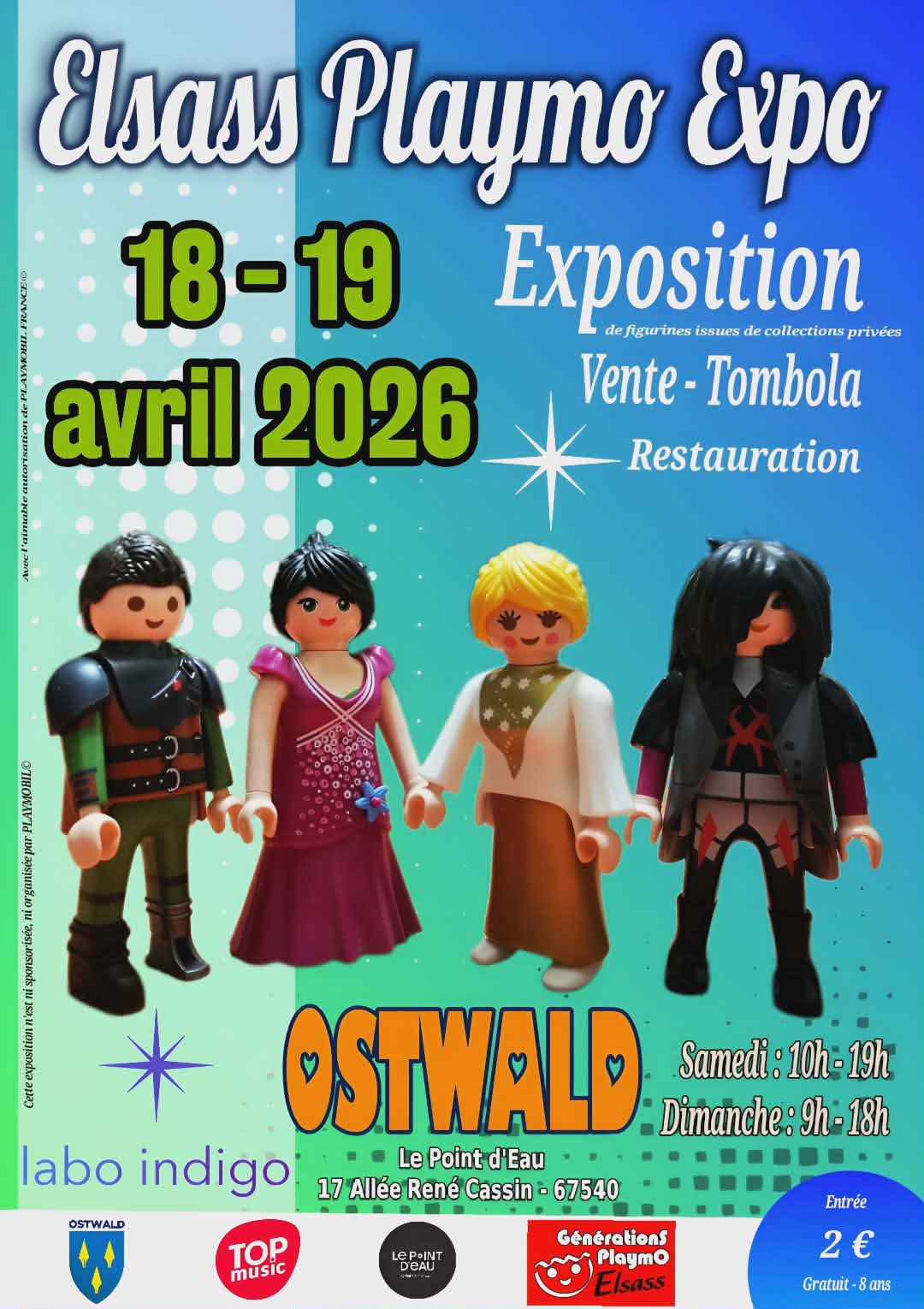 L’Association Alsacienne des fans Playmobil regroupe des amateurs, fans et collectionneurs avertis. L’association a pour but principal de partager sa passion autour de cette petite figurine au travers d’organisation d’événements : expositions, animations, décors de vitrines… Tous les bénéfices des entrées seront intégralement reversés à l’association Labo Indigo qui œuvre à faire évoluer les codes de la mode pour les personnes en situation de handicap.