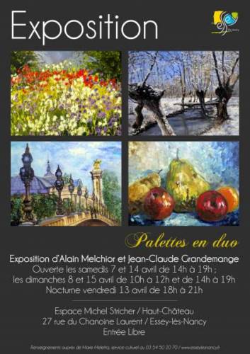 Alain Melchior et Jean-Claude Grandemange, deux amis peintres, ont décidé de présenter ensemble leur amour des paysages et leur démarche commune de recherche de la couleur déclinée dans tous ses reflets. Une approche sensible et diverse de la nature et des cités.