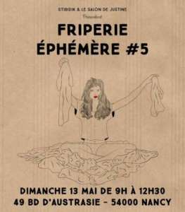 Le concept est né de la collaboration entre STIBIDIK et Le Salon de Justine. Fini les vides dressings pour laisser place aux Friperies Éphémères et profiter d’une vraie session shopping comme on les aime. Le but de de la Friperie Éphémère est de mettre à la portée de tous les trésors du marché de la seconde main.