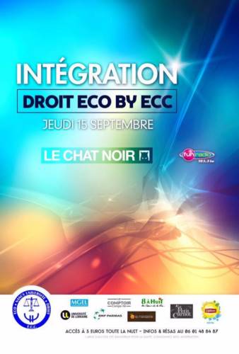 L’ECC - association des Etudiants du Campus Carnot - vous invite désormais à venir découvrir ou redécouvrir l’esprit des juristes et des économistes à l’occasion d’une SOIRÉE D’INTEGRATION qui n’a lieu qu’une seule fois par an. Le jeudi 15 septembre 2016, c’est au Chat Noir qu’il faudra se rendre.