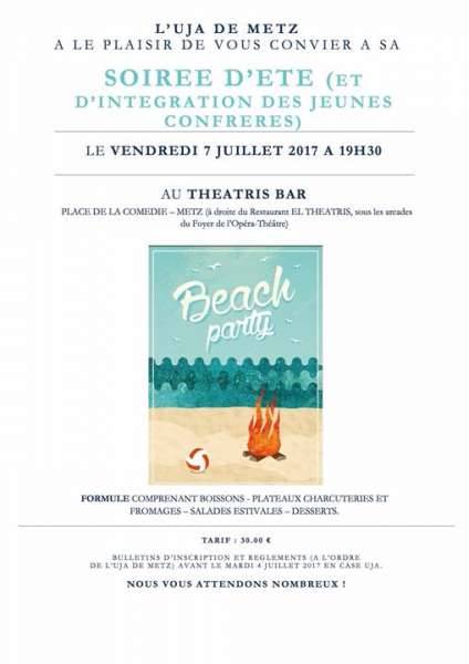 L’UJA de Metz a le plaisir de vous convier à sa soirée d’été et d’intégration des jeunes Confrères, le vendredi 7 juillet à 19h30 au Théatris Bar, place de la Comédie à Metz.