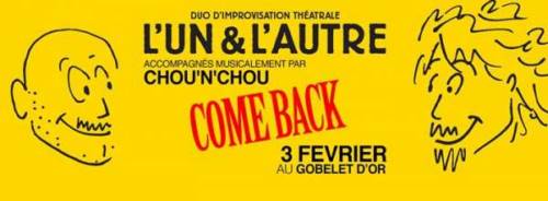 L’un et l’autre, spectacle d’Improvisation Théâtrale par Fabien Fuhrmann et Dan Seyfried, accompagné musicalement par le groupe Chouch’N’Chou, le 3 Février 2018 au Gobelet d’Or