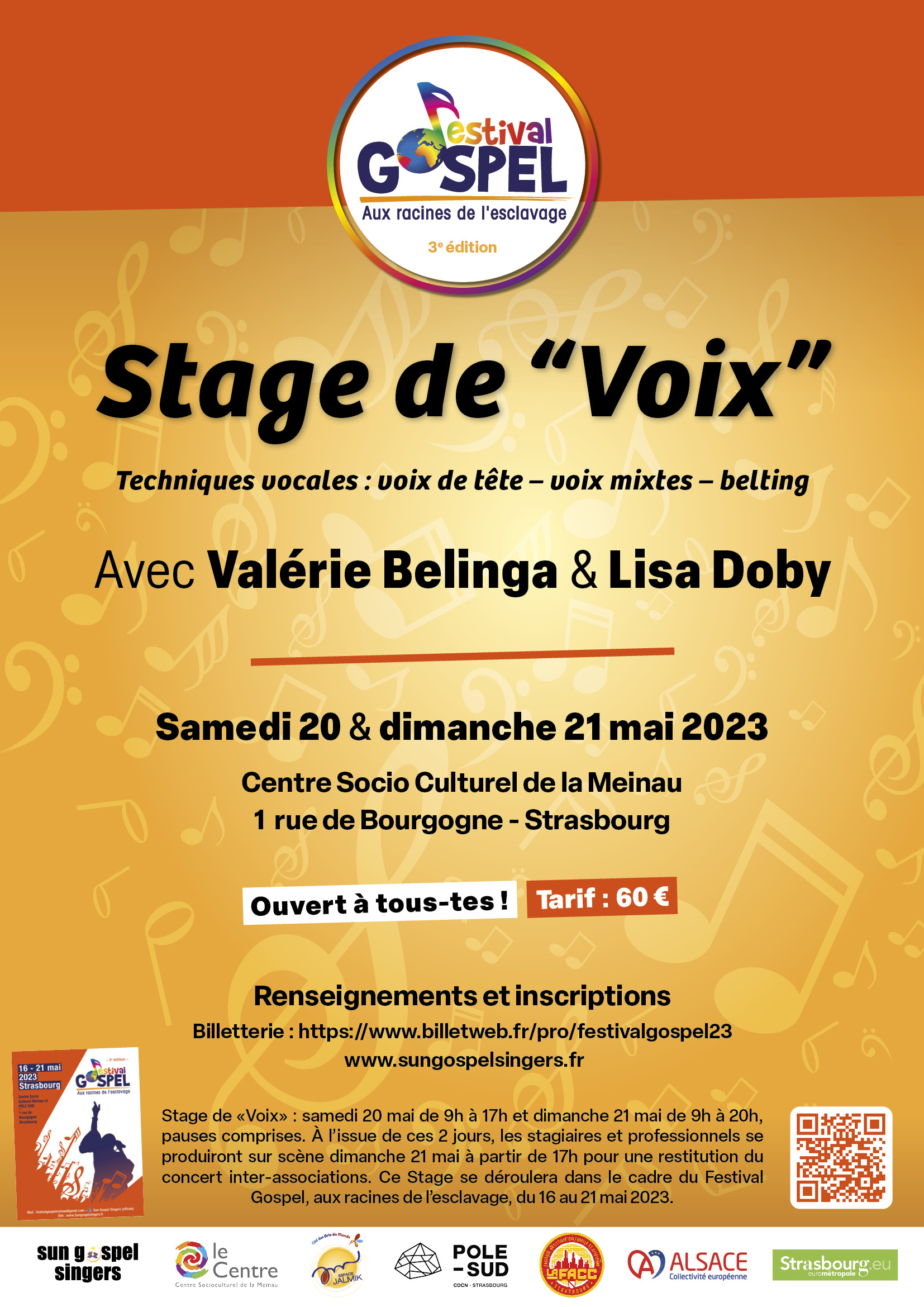 Ce stage s’inscrit dans le cadre du “Festival Gospel, aux racines de l’esclavage”, organisé par les Sun Gospel Singers, du 16 eu 21 mai 2023. Il a pour ambition de faire connaître l’héritage artistique et culturel, né des chaînes du commerce triangulaire, qui demeure intemporel et universel et plus que jamais d’actualité.