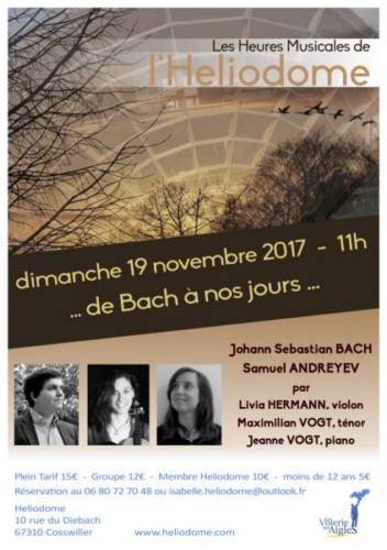 Pour traverser cette période de novembre un peu froide et sombre et vous emmener doucement vers l’Avent, nous vous proposons ce concert, riche en couleurs et lumières intérieures avec la musique de Johann Sebastian Bach. Ce compositeur, puissant et intemporel, est au centre de la musique. Sans doute le plus grand génie musical de tous les temps, il a inspiré de nombreux compositeurs et musiciens de son époque à nos jours, dans tous les styles y compris le Jazz… d’où l’idée d’associer à sa musique celle d’un jeune compositeur dont vous entendrez une création mondiale.