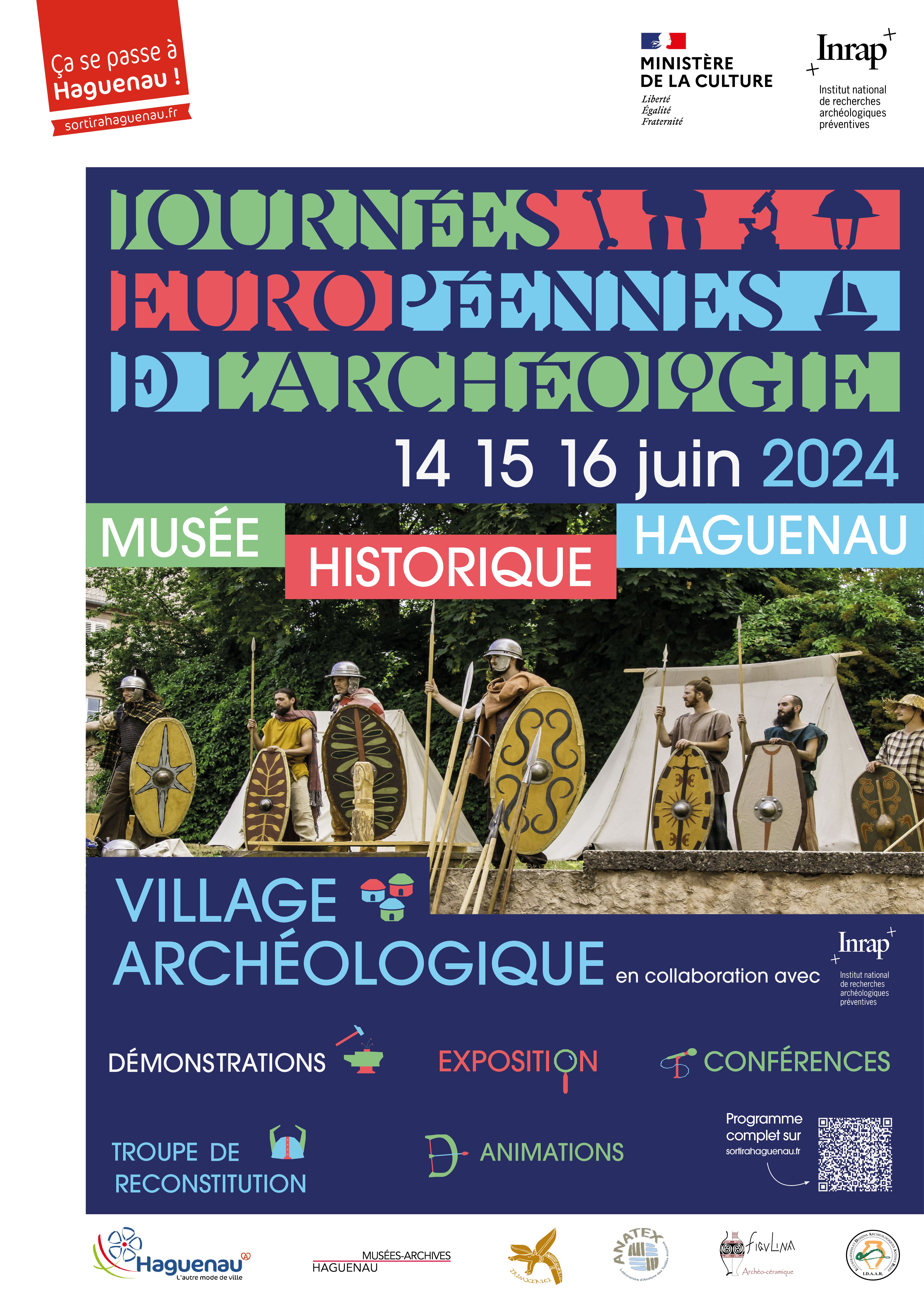 Du 14 au 16 juin 2024, plongez dans le patrimoine archéologique du Musée Historique de Haguenau à l’occasion des Journées Européennes de l’Archéologie. Pour la 1ère fois cette année, le Musée Historique a obtenu le label national « Village archéologique » récompensant la qualité et la variété des animations programmées, en partenariat avec l’Institut national de recherches archéologiques préventives (Inrap).