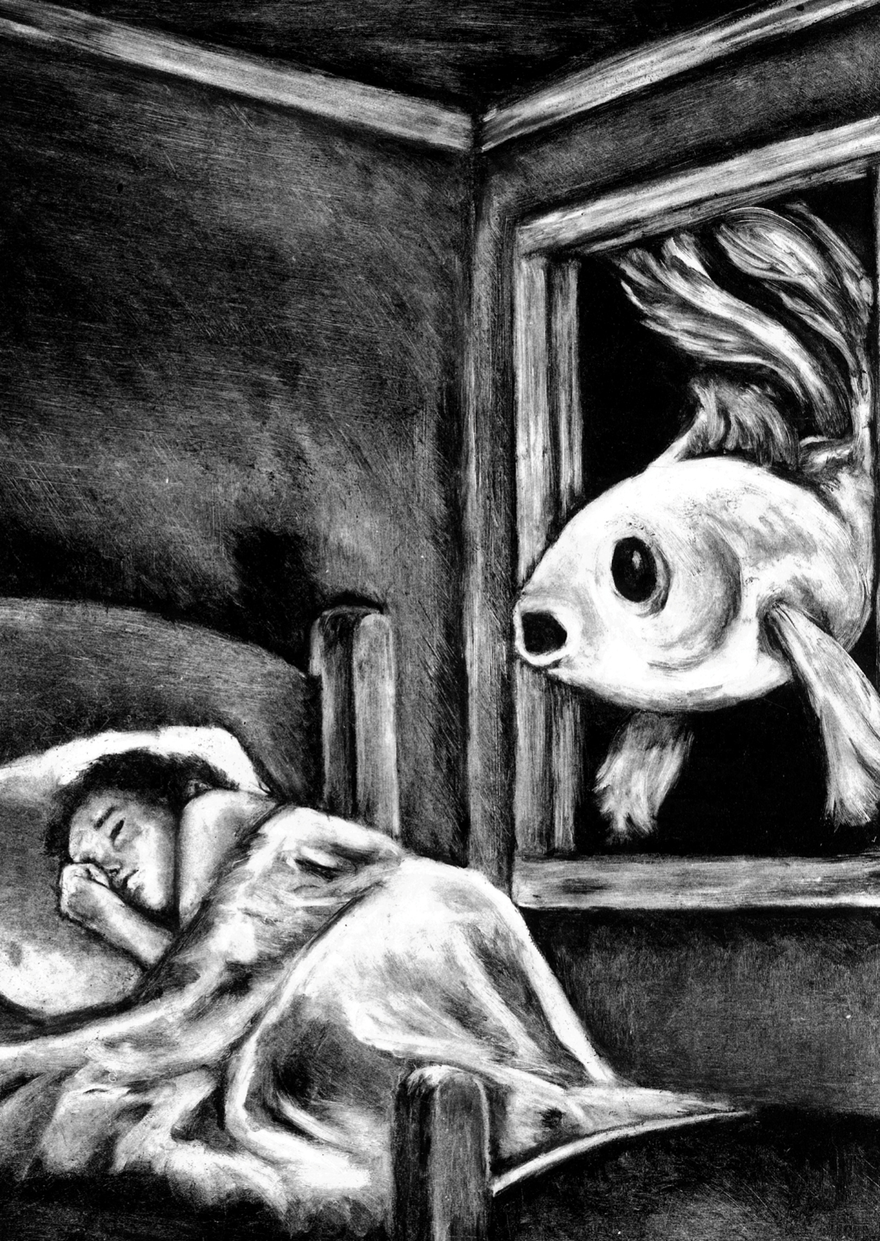 Procédés d’estampes et céramiques illustrées me servent à créer un univers onirique et étrange, inspiré des jeux et contes de notre enfance.