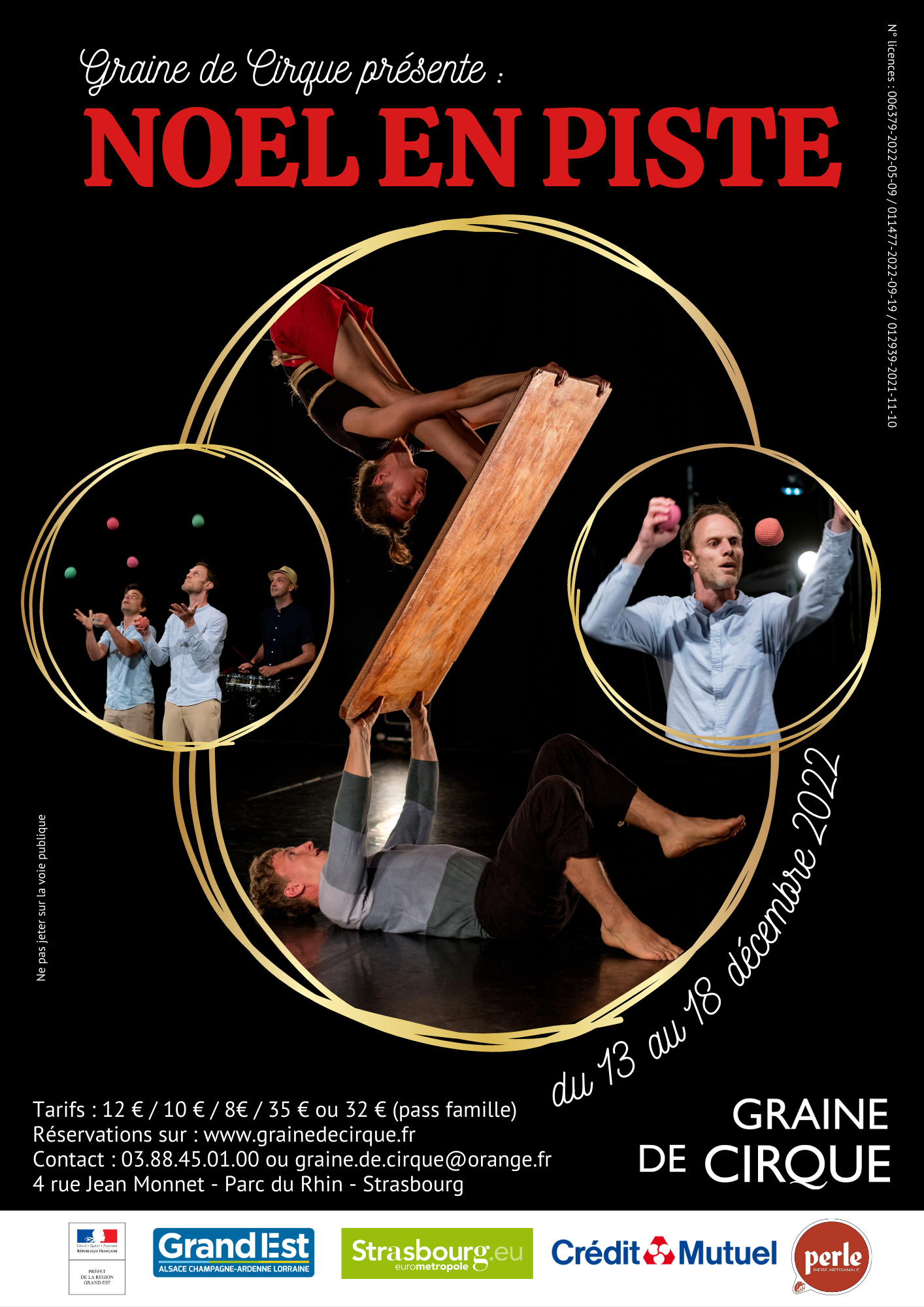 Graine de Cirque et toute son équipe sont heureux de lancer officiellement l'édition 2022 du festival Noël en Piste ! Noël en Piste est un festival organisé par Graine de Cirque du 13 au 18 décembre 2022. Durant ces quelques jours, l'association vous propose plusieurs séances pour venir découvrir deux compagnies.