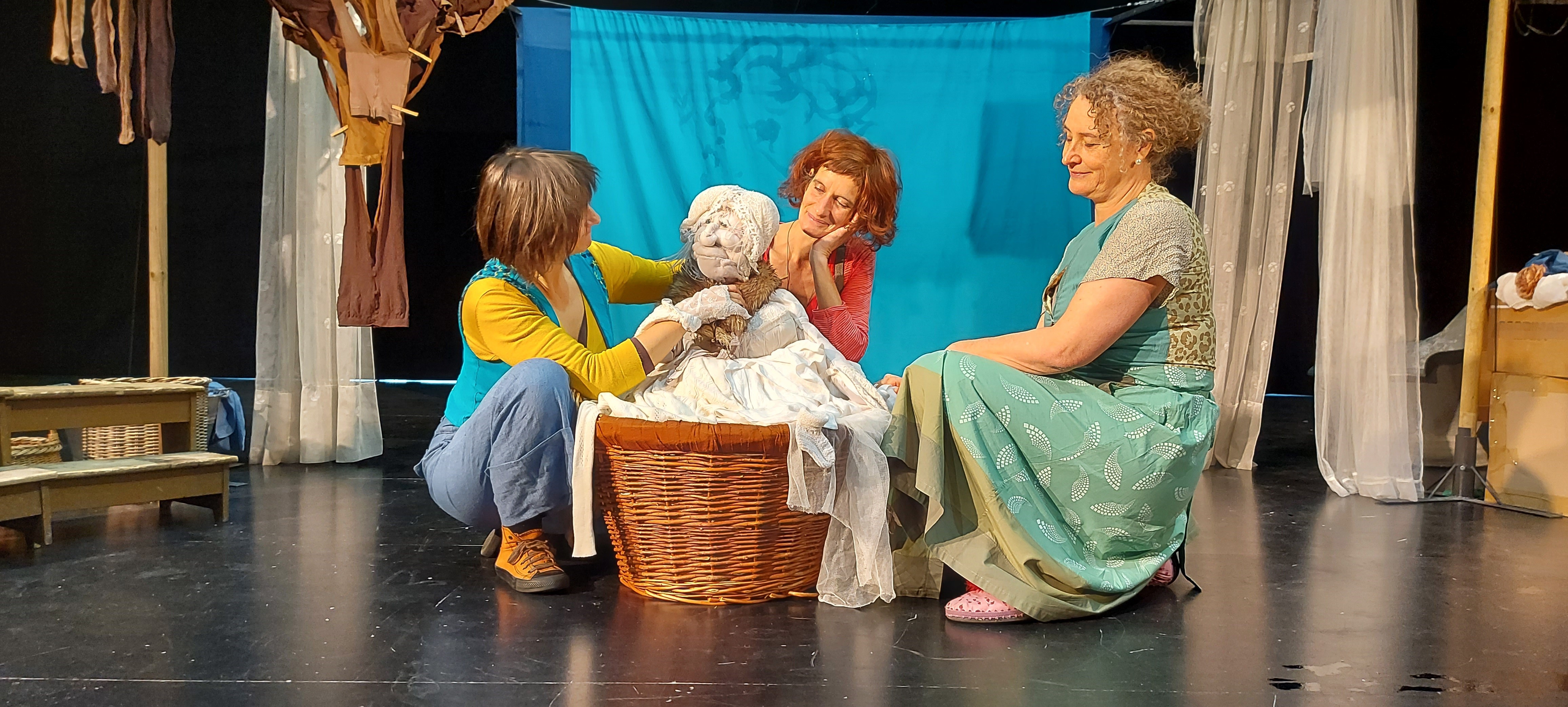 Betty, Louise et Mona chercheront tout au long de cette mise en vide comment dire au revoir à leur chair Marcelle.