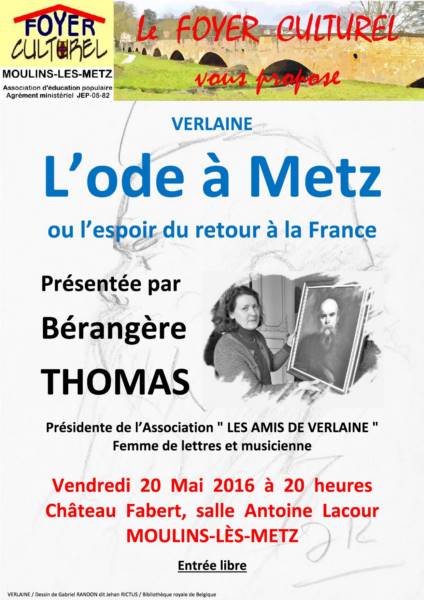 Le Foyer Culturel de Moulins-Lès-Metz vous invite à une conférence intitulée « Ode à Verlaine »