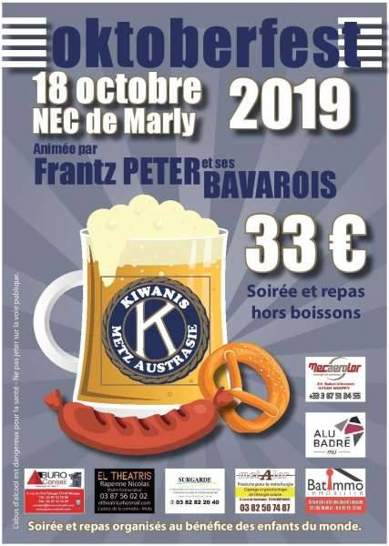 Le Club Kiwanis Metz-Austrasie organise une "oktoberfest" le 18 octobre à Marly. Le Kiwanis est engagé en faveur des enfants défavorisés, handicapés ou en souffrance. Ses actions sont nombreuses, sous de multiples formes, dons, achat de matériel, loisirs, matériel sportif, bénévolat...la devise du Kiwanis est "Servir les enfants du monde".