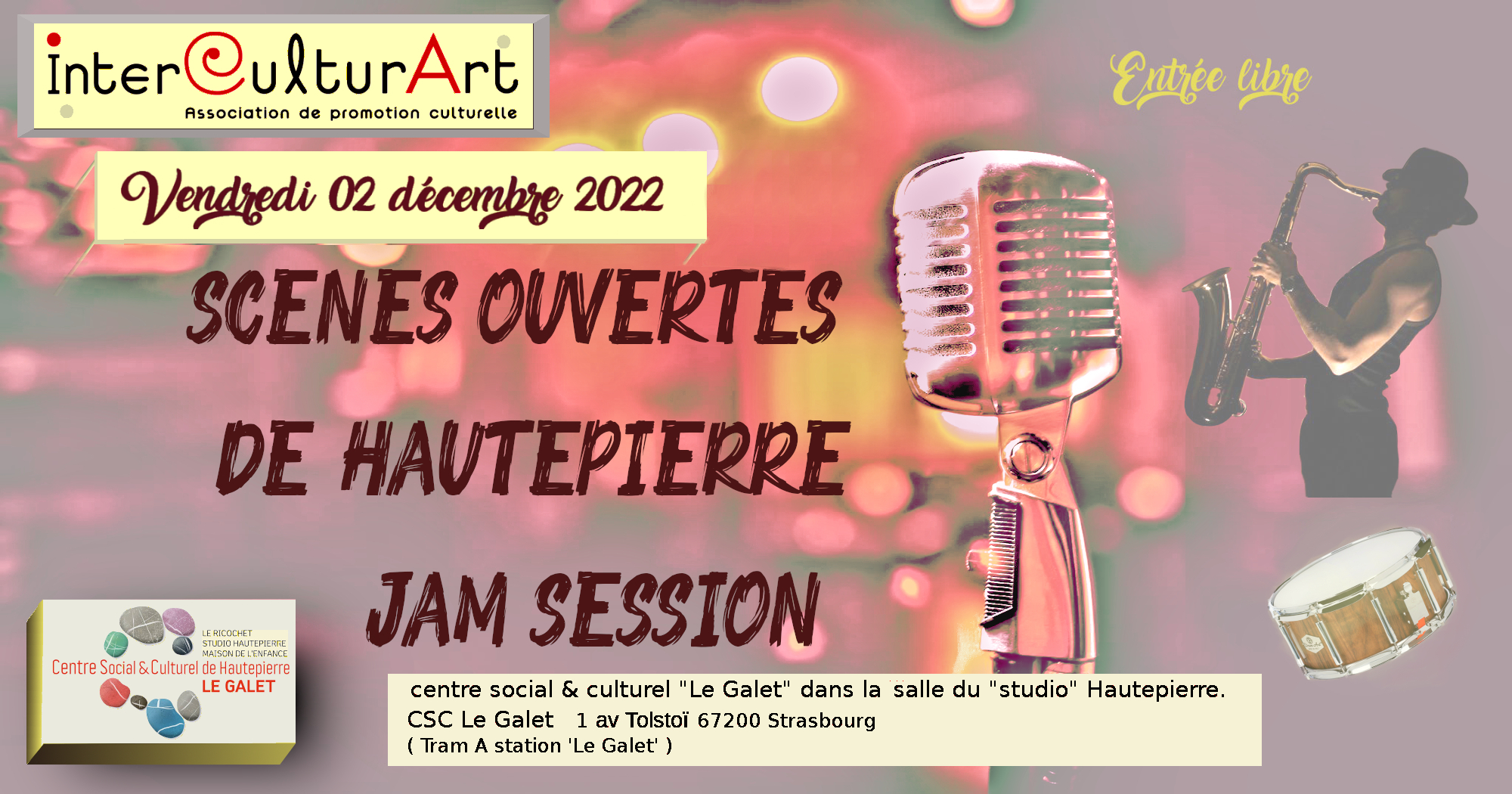 Au studio Galet 1 av tolstoï 67200 Strasbourg Hautepierre. Entrèe libre.