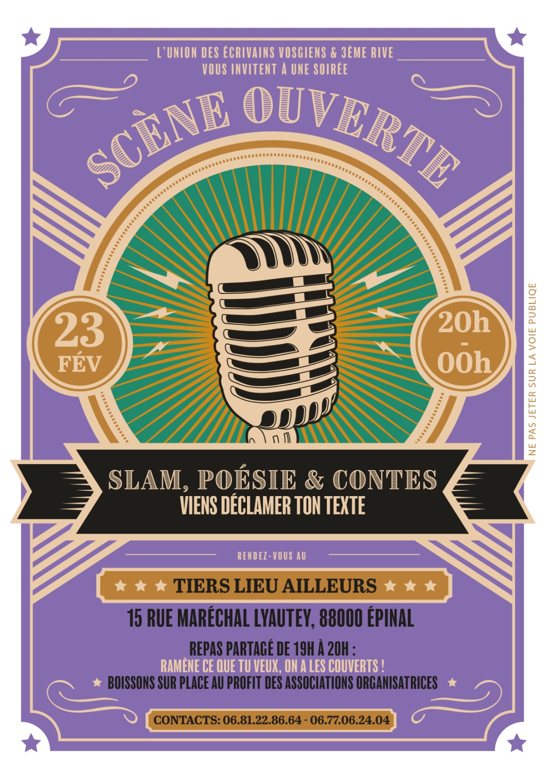 SCENE OUVERTE ce jeudi 23 février, au >>>> Tiers lieu AILLEURS (15 rue Maréchal Lyautey, EPINAL) à partir de 20h.