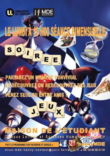 La maison de l’étudiant vous acceuille donc pour une nouvelle année avec ses jeux et sa bonne humeur dès lundi 19 septembre de 20h à 22h pour découvrir ou faire découvrir autre chose que les classiques monopoly et compagnie