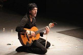 Esthète du noir, Perceval aime à dessiner à ses heures perdues des chevaux noirs sur un désert de cendre, avec par-ci par-là un arbre cramé et souvent un corbeau. Mais la plupart du temps il chante des chansons venues du monde de Soleil Noir. Tentant de rassembler ses forces pour montrer au public que oui, il est sensible, que oui il ne faut pas dire du mal des gens qui sont tristes et surtout de lui, Perceval nous ransporte de l’autre côté du miroir. Et ça fait peur… Ça fait peur parce qu’une fois qu’on a enlevé tous les repères on ne sait plus où on est. Lui-même ne sait plus trop ce qu’il fait sur scène, s’énerve et tel l’aveugle qui siffle un chien fantôme, s’échoue lourdement sur la plage de spectateur. Au moins il arrive quelque part. Juste devant eux. Et finalement ça suffit.