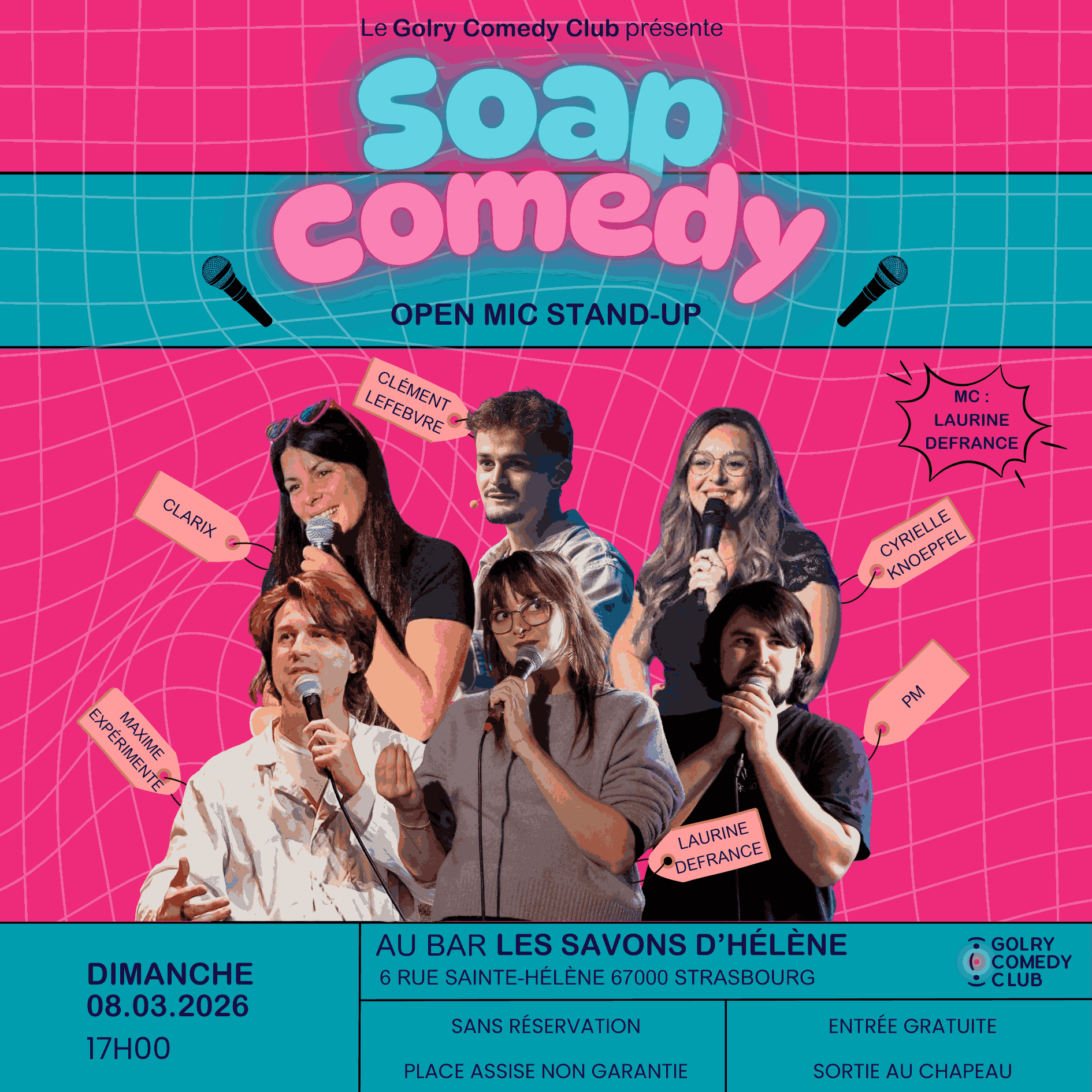 Le Soap Comedy, c'est l'open mic de stand-up du Golry Comedy Club et des Savons d'Hélène, un rendez-vous stand up dominical qui dure depuis plus de 3 ans !