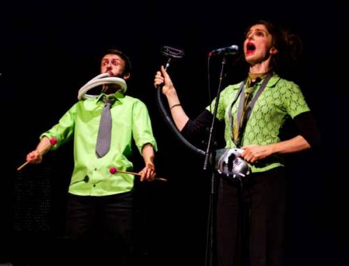 Ils sont accompagnés par un joyeux attirail d’objets en guise d’instruments dans