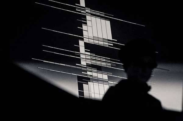 What at first sounds like a battle of digital noise, blips and bass drones, gradually engages the listener with elements of techno and dance music, Live, the use of stark visuals add textures of percussion making it difficult to distinguish between the senses. Ikeda uses different and continuous fragments to construct one flux; creating a union between visual and auditory dimensions which reveals, between codes and calculations, a beating heart as well as the arithmetical and computational essence of sound.