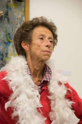 Performance chantée dansée de Geneviève Charras, charivarieuse,lors de la visite guidée de l’exposition tattoo flash n’artwork