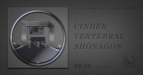 Ce vendredi 26 octobre, la Kulture invite le jeune label de musique électronique Ultratech Rec. pour une soirée exceptionnelle placée sous le signe du live. En charge de représenter la vision bien particulière du label, 3 artistes aussi différents que complémentaires et qui ont déjà fait trembler le caveau de la Kulture à plusieurs reprises : Cinder, Vertebral et Shônagon.