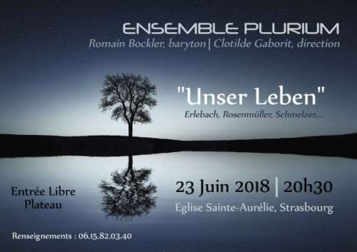 L’Ensemble Plurium vous propose un programme construit autour de compositeurs allemands du XVIIème siècle, représentatifs du Stylus Fantasticus, autour de Philipp Heinrich Erlebach (1657-1714). Construit autour de pièces vocales, Unser Leben sera complété par des pièces instrumentales de Johann Heinrich Schmelzer (1623-1680), et Johann Rosenmüller (1617-1684).