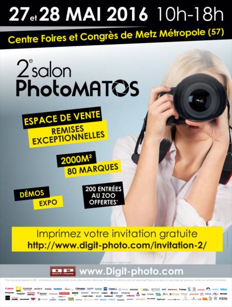 DIGIT-PHOTO organise son 2e Salon PHOTOMATOS le vendredi 27 et samedi 28 Mai au Centre Foires et Congrès de Metz Métropole de 10h00 à 18h00.