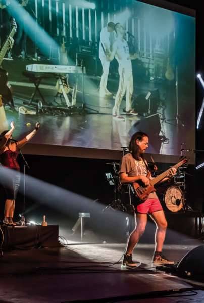 Le meilleur de Queen revisité par quatre musiciens accompagnés de sept choristes et d’un VJ.