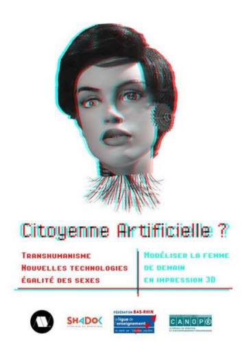 Porté par la Ligue de l’enseignement du Bas-Rhin et co-construit en partenariat avec les Ateliers Canopé de Strasbourg, le Shadok et l’association AV.LAB, ’Citoyenne artificielle ?’ est un projet d’impression 3D autour du transhumanisme et de l’égalité homme/femme.