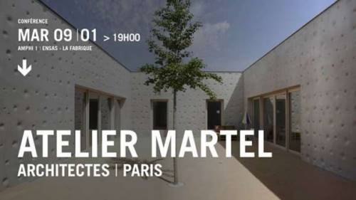 L’atelier, situé dans la rue éponyme du 10ème arrondissement de Paris, est un lieu de partage, d’exposition et de débat, où s’exprime une conception collective du travail, étendue à l’ensemble des acteurs du projet - du maître d’usage aux entreprises - , dans une dialectique permanente entre réflexion et pratique. Travaillant en étroite collaboration avec des artistes, Atelier Martel propose une vision contemporaine de l’oeuvre totale où art, territoire et architecture sont réunis dans un ensemble indissociable. L’irruption de la figure de l’artiste au sein de l’équipe de maitrise d’oeuvre agit comme un libérateur de parole, enrichit le dialogue avec la maîtrise d’ouvrage comme avec les futurs utilisateurs, et facilite les mécanismes d’appropriation.