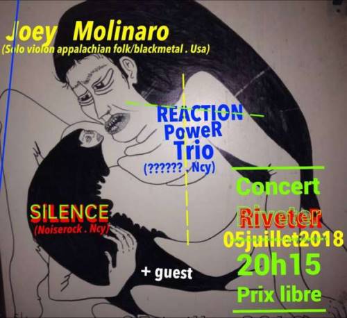 Plateau rock/impro avec des gens qui se bougent pour que ça se bouge à Nancy...avec le collectif RPT (faut-il encore les présenter???), les SERGE (l’oeuf caché de nid’poul), SILENCE (meilleur groupe de nancy-les-metz, dixit Polo) et JOEY MOLINARO (experimental black metal/ solo grind violin, USA)