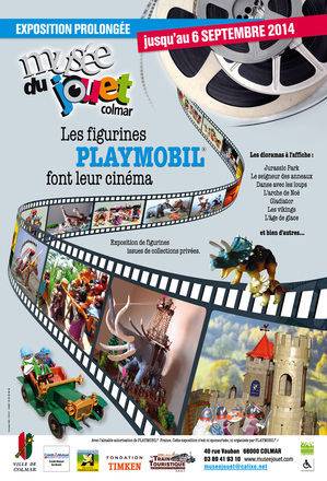 L’exposition met à l’honneur ces figurines ainsi que le septième art. Les PLAYMOBIL® revêtiront leurs costumes d’acteurs. Claude STEIBLE, collectionneur haut-rhinois et passionné par le monde des PLAYMOBIL®, a recréé de superbes dioramas. Ces maquettes revisitent les scènes des plus grands chefs d’œuvre du cinéma.
