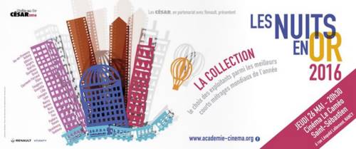 Cette année encore, l’Académie des César (Page officielle) présente, en partenariat avec Renault, la Collection des courts métrages Les Nuits en Or : 9 films tirés du Panorama (33 films primés par les Académies de Cinéma des quatre coins du monde).