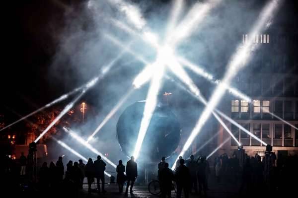 C’est un monument consacré à l’habitant urbain, une ode à la matière noire, au vide, au néant,à l’espace libre, à la vitesse et au temps qui passe. L’installation réagit à son environnement tissant une relation unique avec son lieu d’accueil et le public qui l’entoure.MOONOLITH est une sphère céleste monumentale qui opère à deux niveaux. La nuit, sa surface devient un instrument sensible à la lumière et au son transformant l’installation en un terrain de jeu pour le public. Le jour, MOONOLITH est une sculpture sonore qui réagit aux mouvements des visiteurs. Elle dessine alors un nouvel espace propice au calme et à la réflexion.