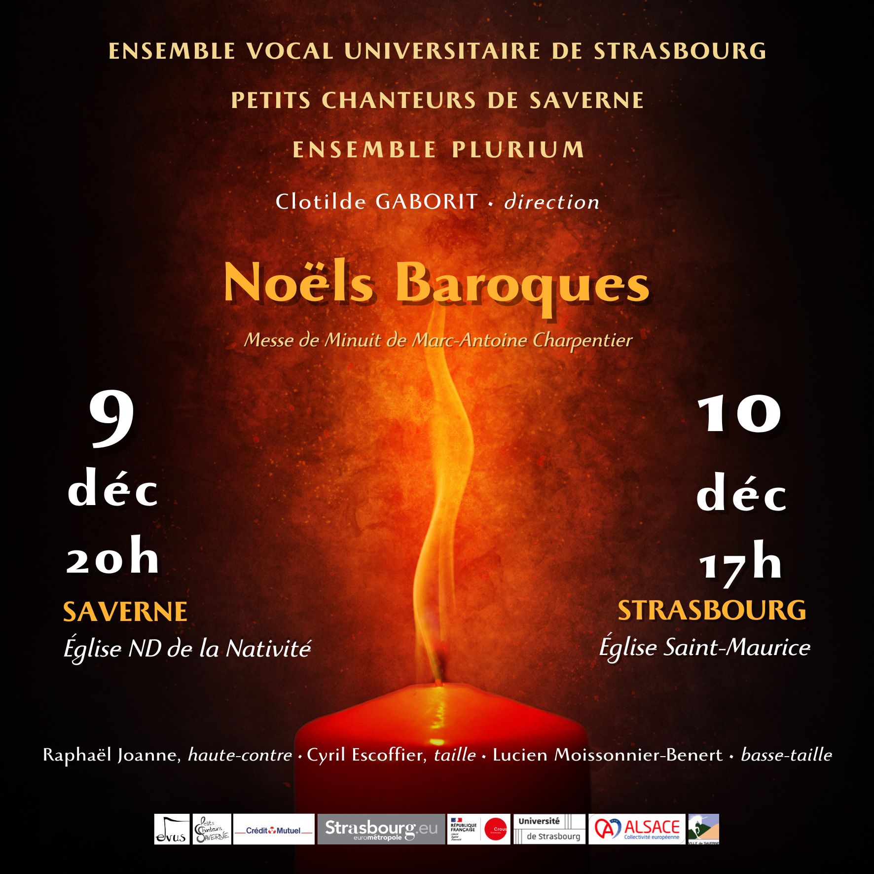 L'Ensemble Vocal Universitaire de Strasbourg propose un programme de concert autour de la Messe de minuit de Charpentier, en compagnie des Petits Chanteurs de Saverne et l'Ensemble Plurium.