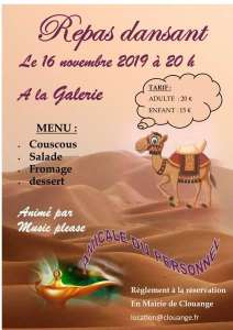 L’amicale du personnel de la mairie de Clouange organise un repas dansant le samedi 16 novembre à  la Galerie, animé par Music Please.