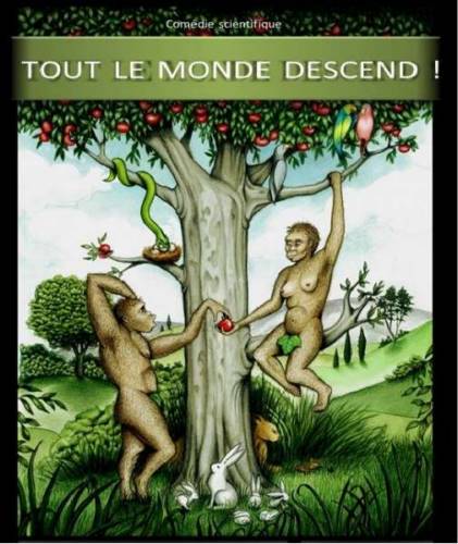 Tout le monde descend ! explique, sur un ton décalé et corrosif, la théorie de Darwin, et met en lumière ses enjeux, au coeur d’une actualité brûlante. Face aux obscurantistes de tous bords, les débats ne manquent pas de piment.