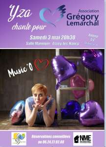 En partenariat avec la Ville d’Essey-lès-Nancy, l’association ascéenne Music’O Cœur et sa chanteuse et présidente Yza, vous proposent un nouveau spectacle solidaire au profit de l’association Grégory Lemarchal, contre la mucoviscidose.